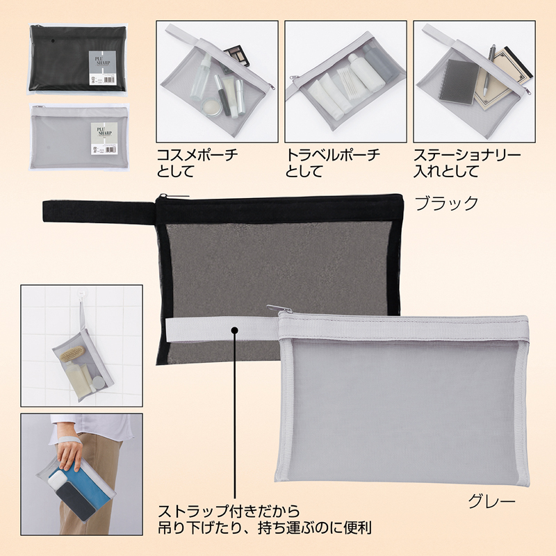 プラシャープ・ストラップ付きメッシュフラットポーチ